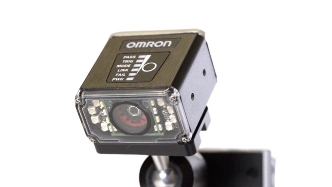 A Omron microhawk fixed scanner is located at the inspection station configured for a triggered read to decode the laser marked UID bar code.